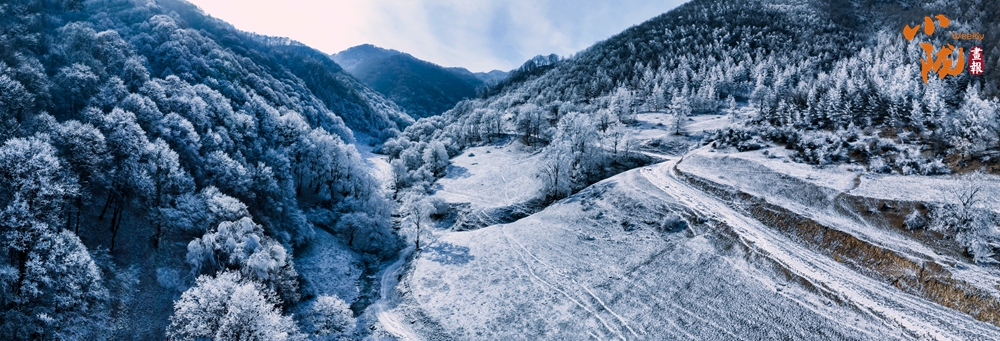 走進(jìn)關(guān)山,看到的是一個神話般的雪韻凇情美景,霧凇結(jié)在樹上,亮晶晶的猶如一根根銀條,浪漫唯美,別有韻味。