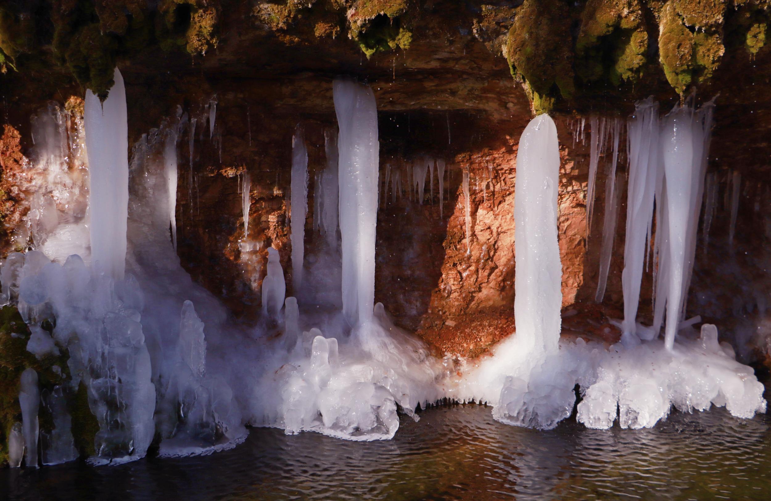 連日來,崇信縣持續(xù)降溫,AAAA級(jí)旅游景區(qū)龍泉寺泉水凝結(jié)成奇特秀麗的冰掛、冰柱、冰花美景,懸掛于山間,如萬把銀色寶劍垂吊,展現(xiàn)著冰肌雪骨的風(fēng)姿,似盞盞熒光閃爍,在陽光的照耀下熠熠生輝、耀眼奪目,引來不少游客拍照觀賞。(崇信縣融媒體中心記者:孫淑霞  張百耀)