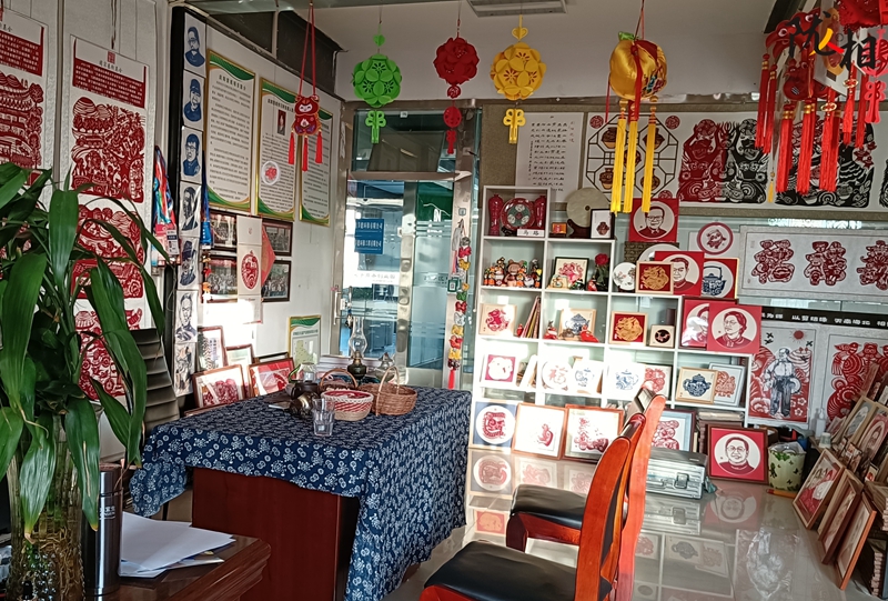 走進(jìn)中國民間剪紙藝術(shù)大師馬路的工作室,陳列在側(cè)的剪紙作品在窗內(nèi)的光影下顯得栩栩如生、惟妙惟肖。