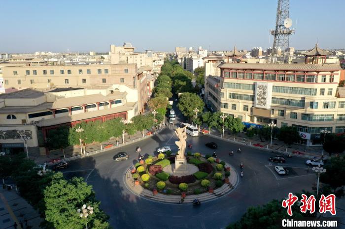圖為敦煌城市內(nèi)一景,敦煌城標——反彈琵琶。(資料圖)張曉亮 攝