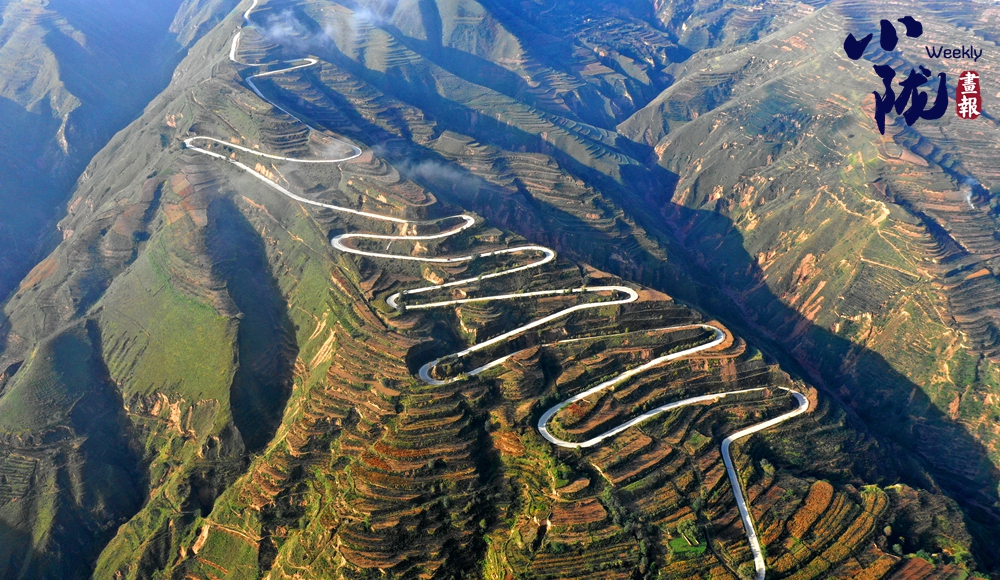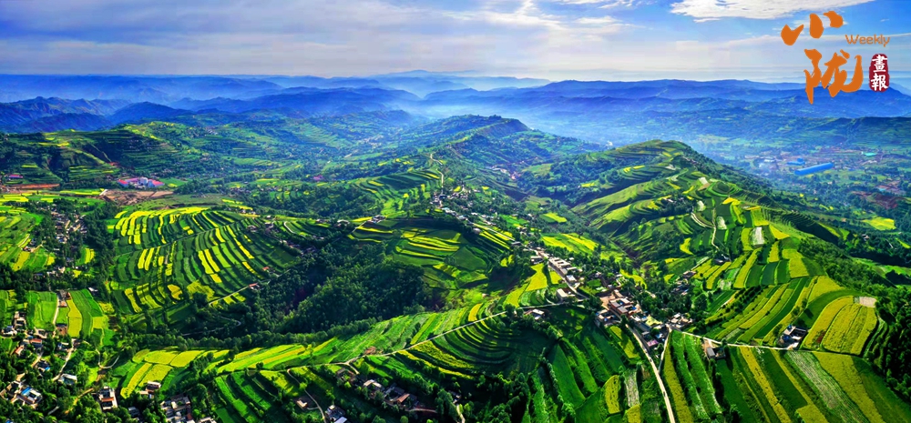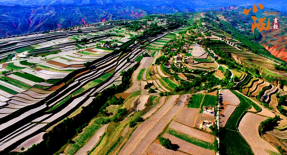 一塊塊梯田,從山峁到山腳,依次而下,大大小小,一層層、一片片,遠遠望去,千層萬疊,一片紛繁。蔥綠與明黃裝扮的沃野,是季節(jié)的舞衣,也是莊戶人的希望。