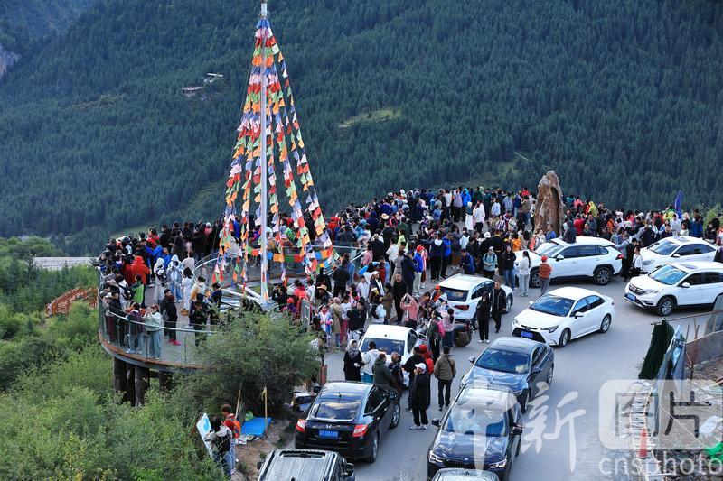 8月19日,游客在扎尕那景區(qū)仙女灘游玩。扎尕那景區(qū)位于甘肅省甘南藏族自治州迭部縣益哇鎮(zhèn),藏語意為“石匣子”,整個(gè)景區(qū)平均海拔在3000米以上,四周群山環(huán)抱,山頂云霧繚繞,森林、草原、青稞梯田與獨(dú)特的人文景觀互補(bǔ)整合,藏式民居點(diǎn)綴其間,吸引游客前來參觀游玩。中新社發(fā) 陳永剛 攝
