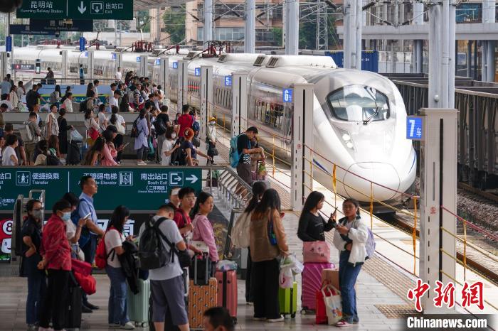 8月31日,云南昆明,列車抵達昆明站。當日,為期62天的中國鐵路暑運結(jié)束。中新社記者 劉冉陽 攝