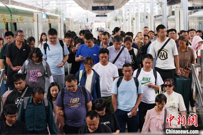 8月31日,云南昆明,列車抵達昆明站,旅客走出站臺。當日,為期62天的中國鐵路暑運結(jié)束。中新社記者 劉冉陽 攝