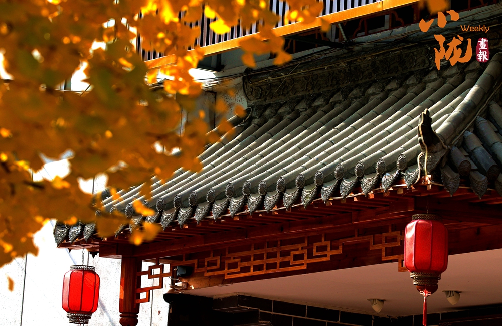 金黃的樹葉與古建筑交相輝映,彰顯著傳統(tǒng)文化之美。那秋色、秋風(fēng)、秋聲、秋景把自然編織成一幅人間佳作,山水相映的絕美畫廊,別有一份古韻。