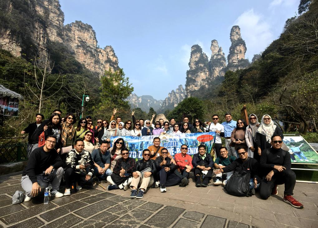 11月5日,來自印度尼西亞的團(tuán)隊(duì)游客在張家界國(guó)家森林公園留影。(吳勇兵 攝)