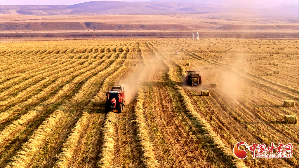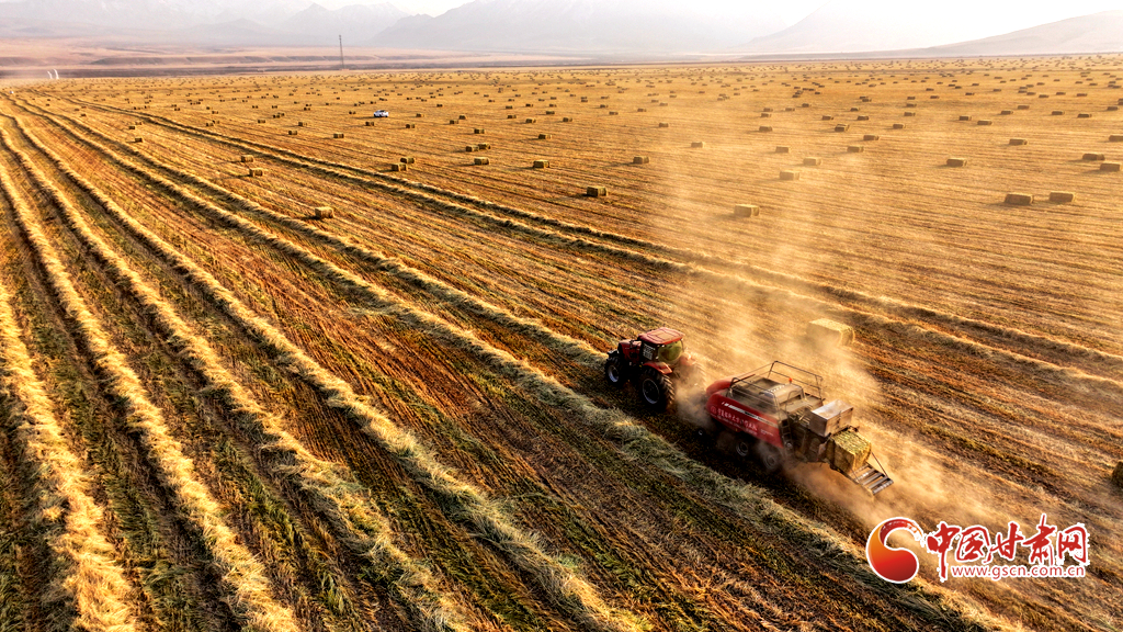 11月11日,甘肅山丹馬場的10萬畝燕麥草進(jìn)入打包高峰期,田野上呈現(xiàn)出一派繁忙而有序的景象。放眼田間,大型農(nóng)用機(jī)械來回穿梭,將燕麥草迅速壓縮、打包,一個個草捆整齊排列。與此同時,滿載草捆的運(yùn)輸車在田間小道上來回奔波,將成品送往倉庫和銷售地。