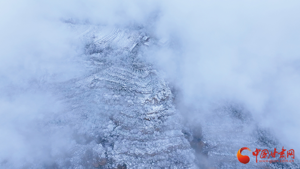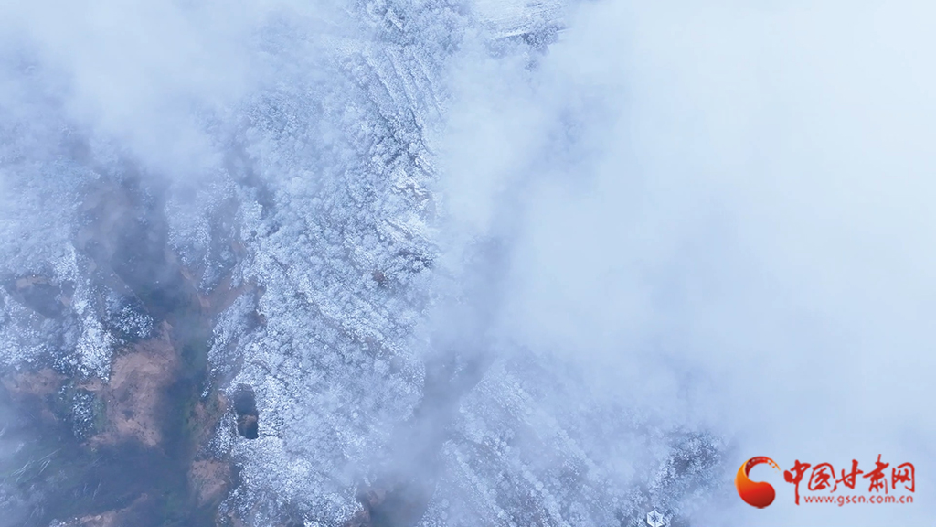 從高空俯瞰,云海之中霧凇景觀蔚為壯觀,連綿起伏的山巒美如仙境??~緲的云霧似輕紗流淌涌動(dòng),漫過(guò)靜謐的山林,好似一幅如夢(mèng)似幻的水墨畫(huà)卷。