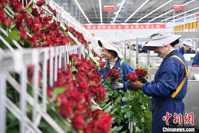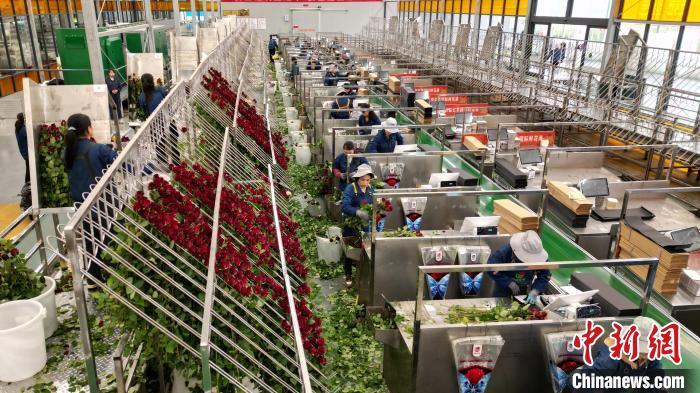 近年來,當(dāng)?shù)靥岢?ldquo;打造魅力花都、建設(shè)公園城市”,聚焦“浪漫經(jīng)濟”,大力發(fā)展鮮切花產(chǎn)業(yè)。交通便利、人力資源富集是吸引這座“超級玫瑰工廠”國際鮮花港落戶臨夏的主因。