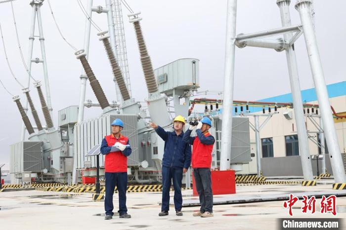 國(guó)網(wǎng)慶陽(yáng)供電公司工作人員在華能翼珍風(fēng)光電站巡視設(shè)備運(yùn)行情況。楊馥毓 攝