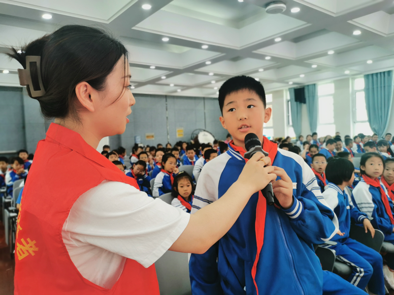 在“文明上網(wǎng)·快樂童行”主題活動中,小學生回答網(wǎng)絡(luò)文明志愿者的提問。蘭州文明網(wǎng)供圖