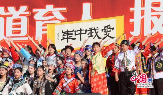 “歌唱我們親愛的祖國(guó),從今走向繁榮富強(qiáng)……”湖南省龍山縣第二中學(xué)八年級(jí)師生深情合唱。11月28日下午,該校第十八屆校園藝體節(jié)文藝匯演精彩上演,七千師生歡聚操場(chǎng)。