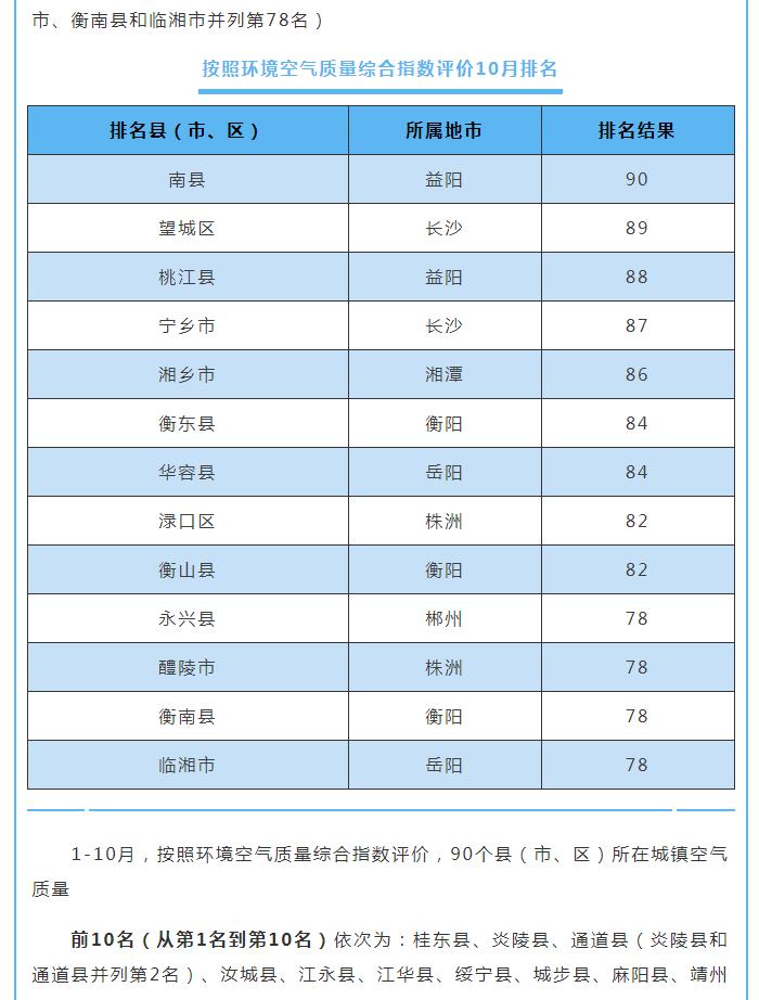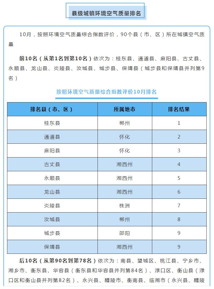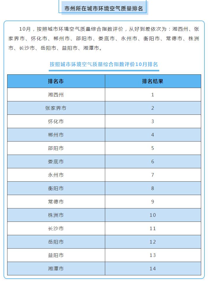 原標題:10月湖南環(huán)境空氣質(zhì)量:湘西張家界位居前茅
