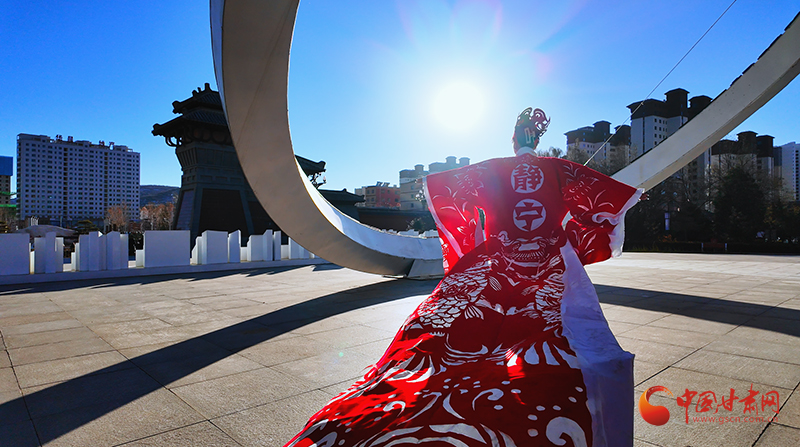 在靜寧縣成紀(jì)文化城里,兩名模特身著“盛裝”翩翩起舞,盡情展示自信與優(yōu)雅,緩緩走動間,靜寧蘋果、靜寧果農(nóng)等元素裝飾的紅色剪紙服飾隨風(fēng)搖曳,讓國家級“非遺”——中國剪紙也流動了起來。這精彩的作品展示,來自仇跟銀的妙手。