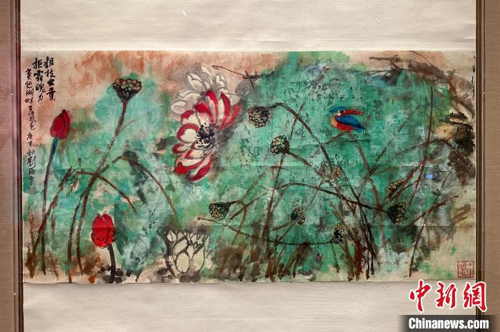 劉海粟《粗枝大葉荷花》?!≈行戮W(wǎng)記者 王笈 攝