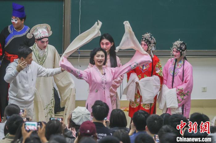2024年3月,江西南昌,南昌大學(xué)贛劇藝術(shù)鑒賞課堂上,國家級(jí)非物質(zhì)文化遺產(chǎn)代表性項(xiàng)目“贛劇”代表性傳承人陳俐正在給學(xué)生上課。(資料圖)劉力鑫 攝