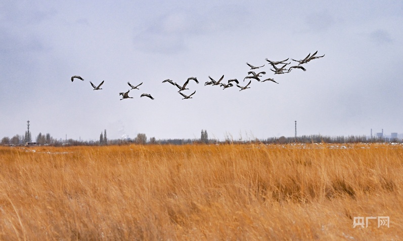 千只灰鶴在嘉峪關草湖國家濕地公園振翅高飛(央廣網(wǎng)發(fā) 嘉峪關市融媒體中心供圖)