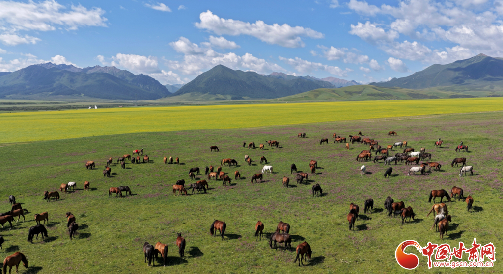 隴拍客丨祁連山下山丹馬場上演壯闊奔馬圖