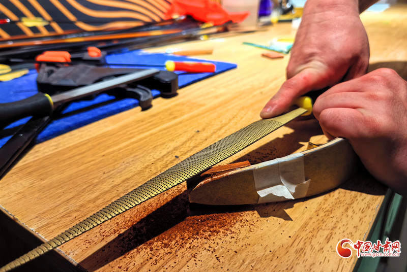 2011年,還是大學生的謝建戈在百度貼吧結(jié)識了山東臨沂“高氏傳統(tǒng)弓箭”非遺傳承人高超。囊中羞澀的他提出“先貨后款”,高超被這份赤誠打動,寄來第一套玻片弓料。一個月后,生活費一到賬,他第一時間把錢打了過去——網(wǎng)絡(luò)那端的高超從此記住了這個甘肅小伙。2012年,他做出人生第一把玻片弓。