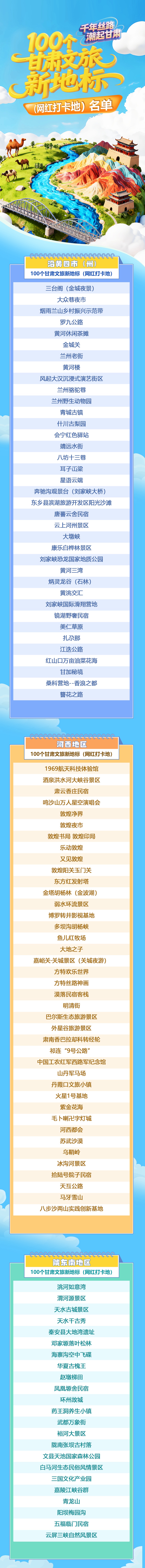 附:100個(gè)甘肅文旅新地標(biāo)(網(wǎng)紅打卡地)名單
