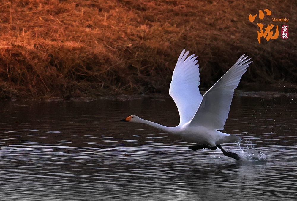 這里聚集了黑鸛、白鷺、鴛鴦、天鵝、赤麻鴨、灰雁等多種水鳥,它們在黃昏里愜意地游弋,或扎進(jìn)水里捕魚,或相互追逐戲水的畫面,既震撼又溫柔,成為攝影愛好者和游人爭相追逐的“冬日奇景”。