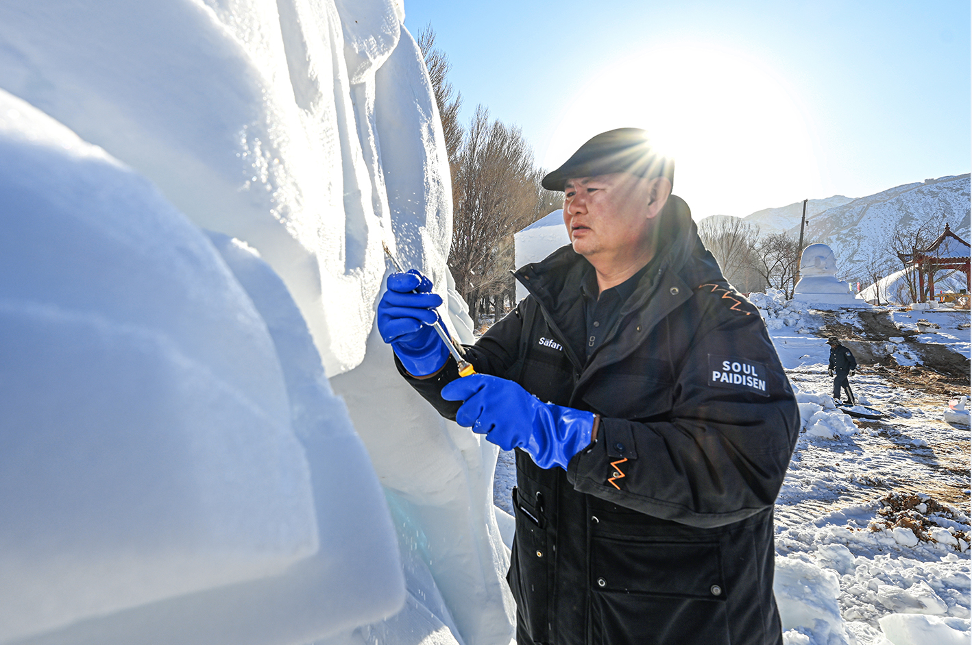 長城腳下雪雕展 馬年新春獻“賀禮”