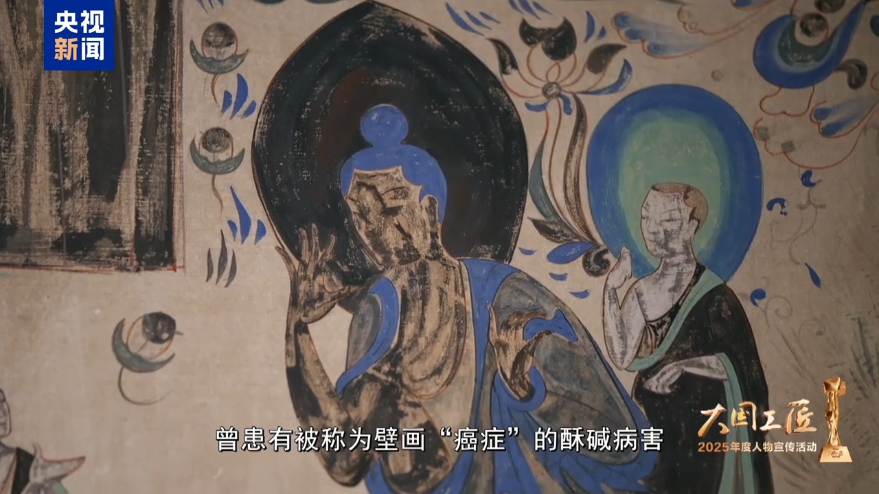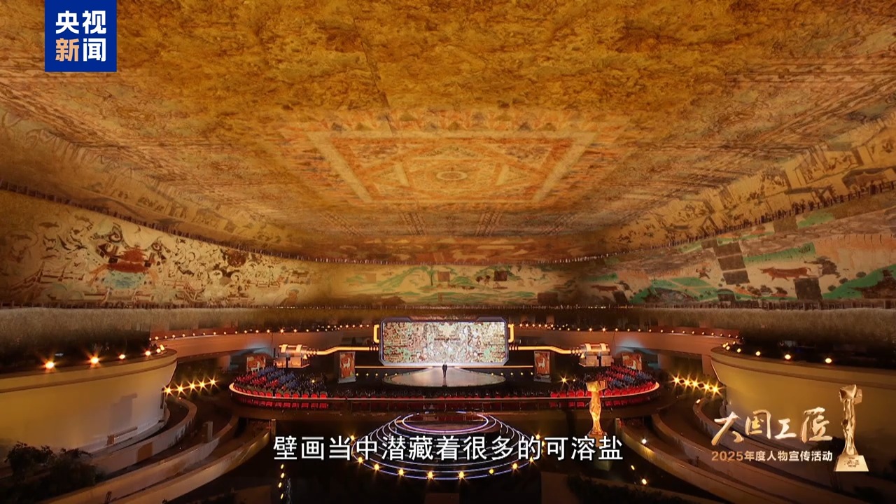 2025年大國工匠年度人物、敦煌研究院壁畫保護(hù)修復(fù)專家 樊再軒:這里,是我守護(hù)一生的地方——敦煌莫高窟,它是大漠深處矗立千年的文明圣殿。45年前,我開始修復(fù)敦煌壁畫,總感覺是在和古代的畫工們進(jìn)行著跨越時(shí)空的交流。這些壁畫,它是會呼吸的,它是有生命的。然而,壁畫當(dāng)中潛藏著很多的可溶鹽,在洞窟里受到溫濕度的影響,反復(fù)地潮解、結(jié)晶,導(dǎo)致壁畫膨脹、收縮。就像一雙雙無形的手,在一點(diǎn)一點(diǎn)撕裂著壁畫的肌膚,這就是壁畫“癌癥”。我暗下決心:要讓這千年瑰寶在時(shí)光的長河里留存得久一點(diǎn),更久一點(diǎn)。
