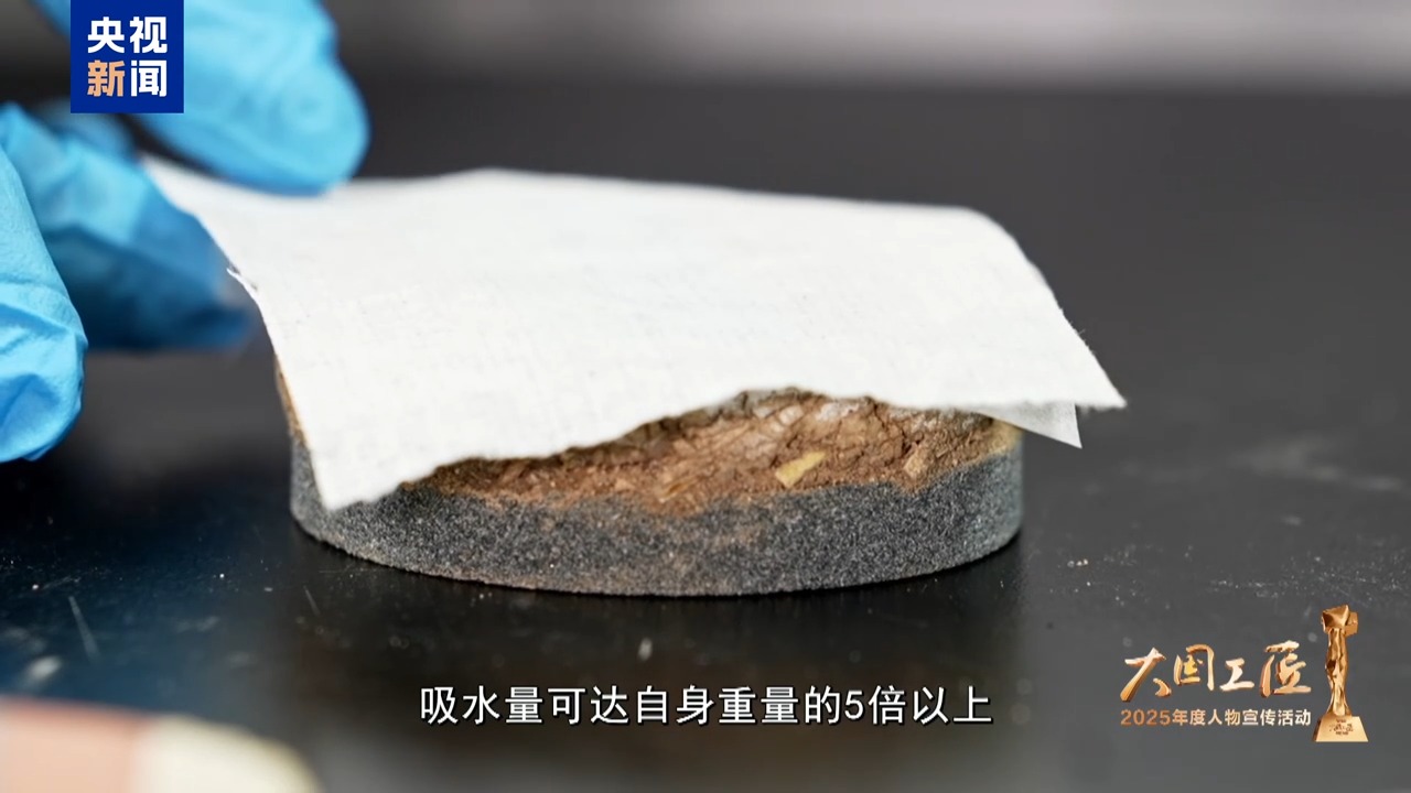 反復(fù)探尋,樊再軒和團(tuán)隊(duì)終于鎖定了一種最優(yōu)材料,吸水量可達(dá)自身重量的5倍以上,持水性能優(yōu)異,并且不會對珍貴壁畫造成損傷。