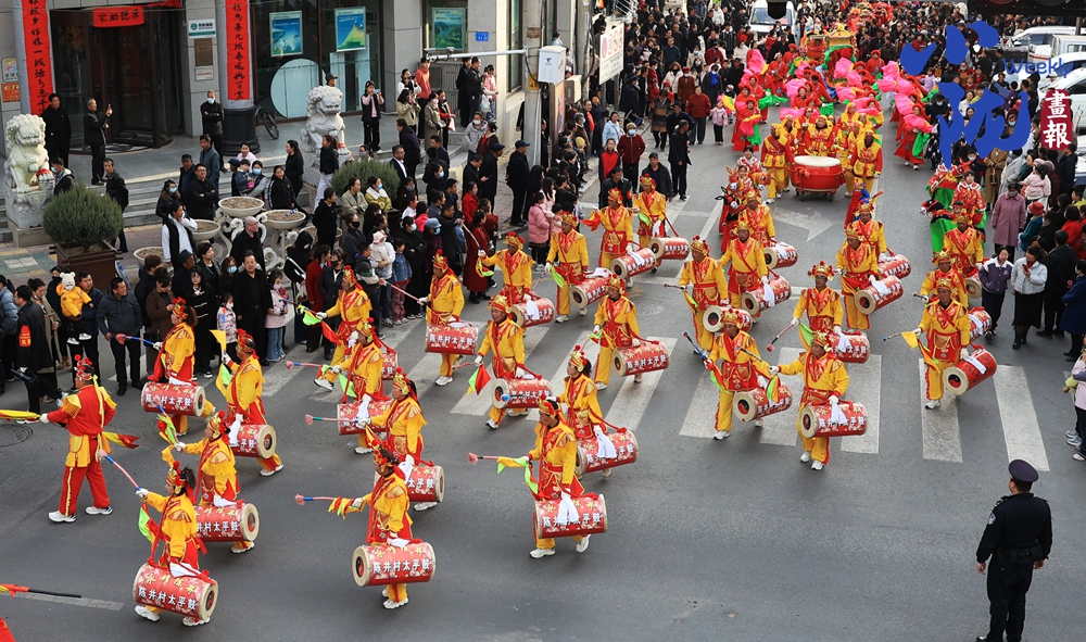 太平鼓氣勢磅礴,鼓手們精神抖擻,手中的鼓槌系著紅綢,上下翻飛,恰似萬馬奔騰。那陣陣的鼓聲,是幸福的表達,是激情的迸發(fā),更是我們向新時代進發(fā)的堅定足音。