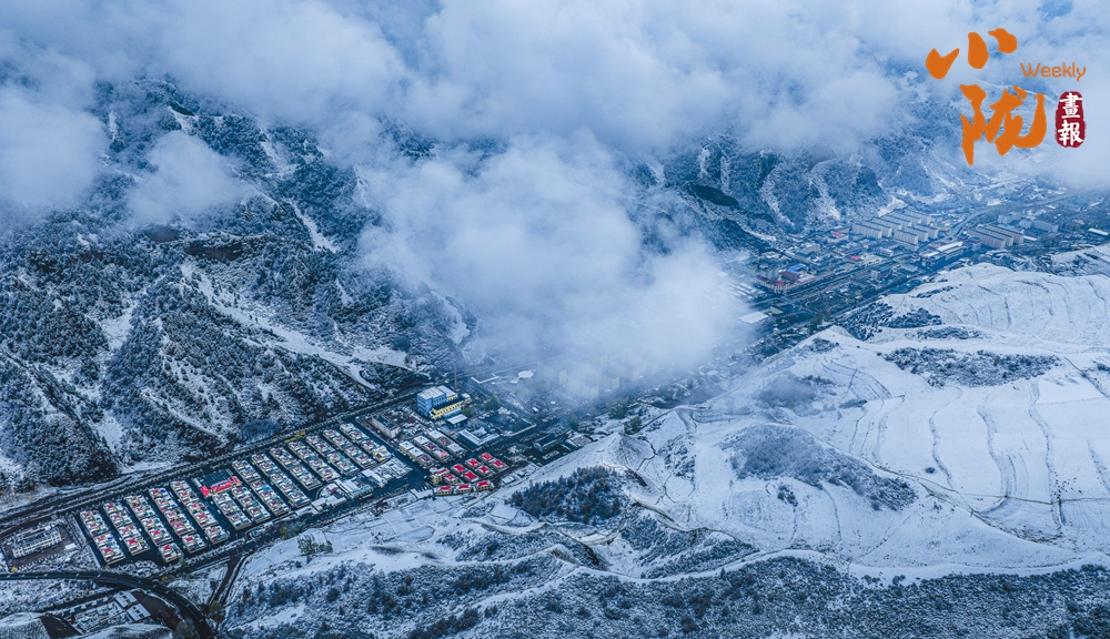 從高空俯瞰,烏鞘嶺的山脊線在雪中若隱若現(xiàn),一側(cè)云海翻騰,一側(cè)晴空萬(wàn)里,形成鮮明的“一山分兩景”的奇觀。