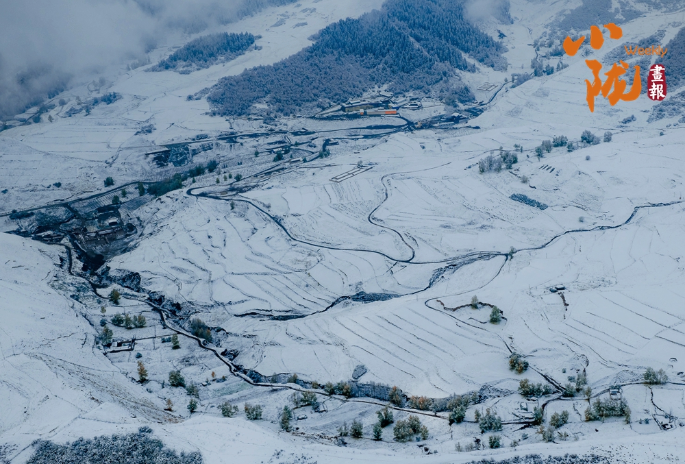 阡陌縱橫的農(nóng)田披上了素白的紗衣,天地之間,仿佛只剩下黑白兩種顏色,那遠(yuǎn)山的輪廓,那梯田的線條,那河床的蜿蜒,構(gòu)成了最純正的中國(guó)水墨畫。